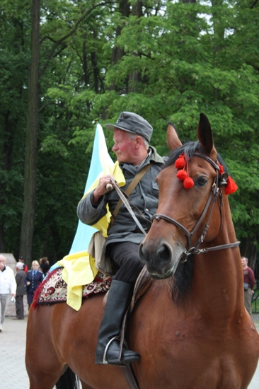 І таке було сьогодні в Івано-Франківську - кіннота супроводжувала урочисту ходу громадськості з Меморіального скверу до Вічевого майдану