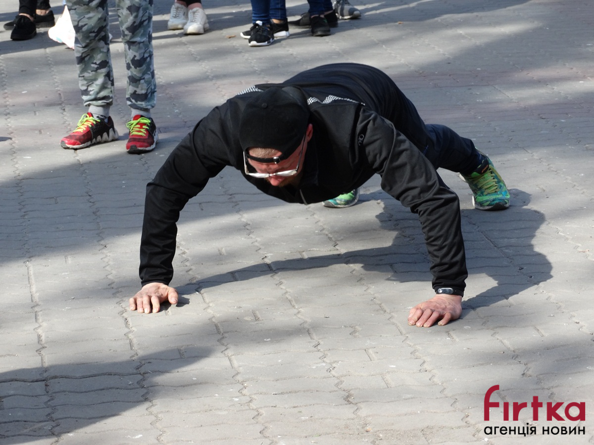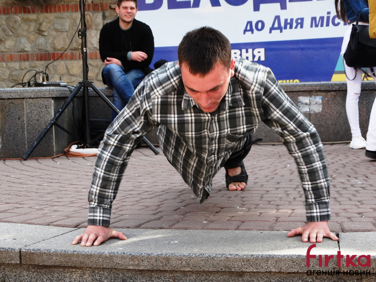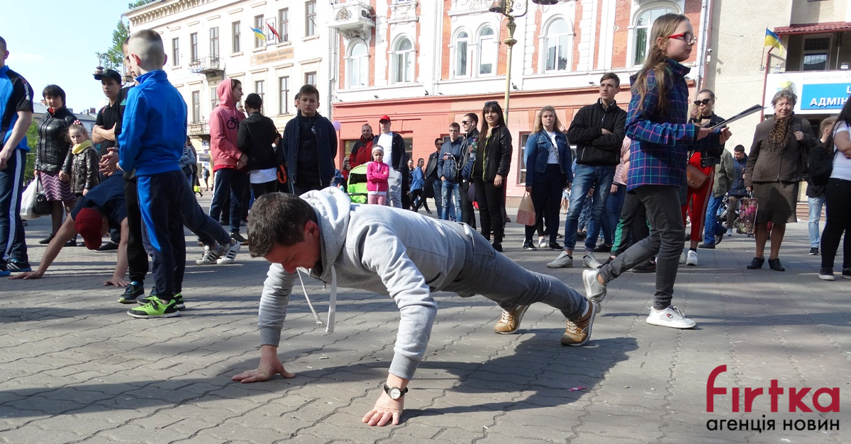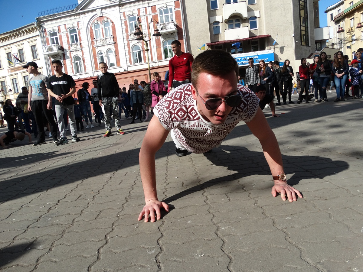 9 травня на Вічевому майдані Івано-Франківська з ініціативи голови ГО «Спільними зусиллями», депутата міської ради від УКРОПу Віталія Мерінова, відбувся вже традиційний марафон віджимань.