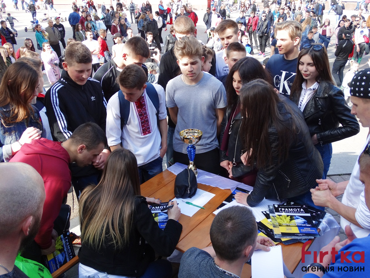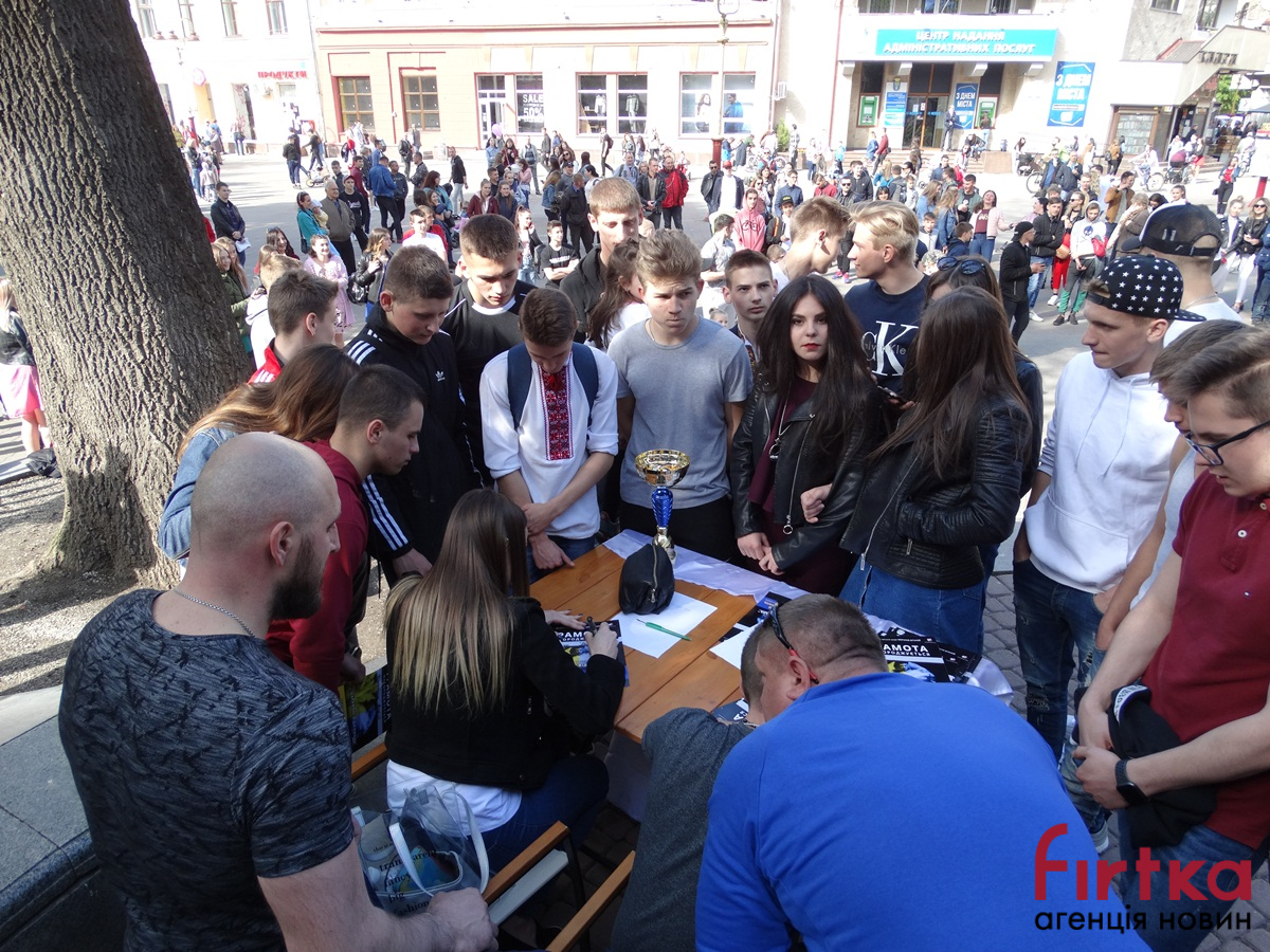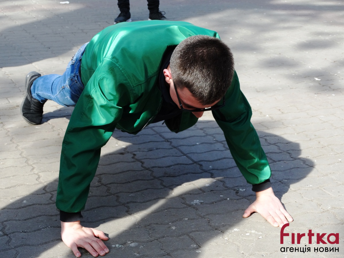 9 травня на Вічевому майдані Івано-Франківська з ініціативи голови ГО «Спільними зусиллями», депутата міської ради від УКРОПу Віталія Мерінова, відбувся вже традиційний марафон віджимань.