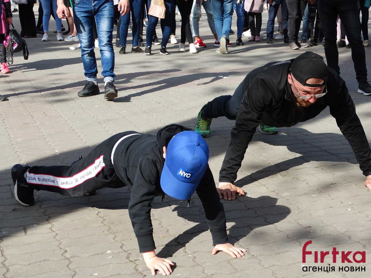 Цього разу учасники спортивного дійства мали на меті зробити 27 028 віджимань – саме стільки днів минуло від завершення Другої світової війни, інформує кореспондент Фіртки.