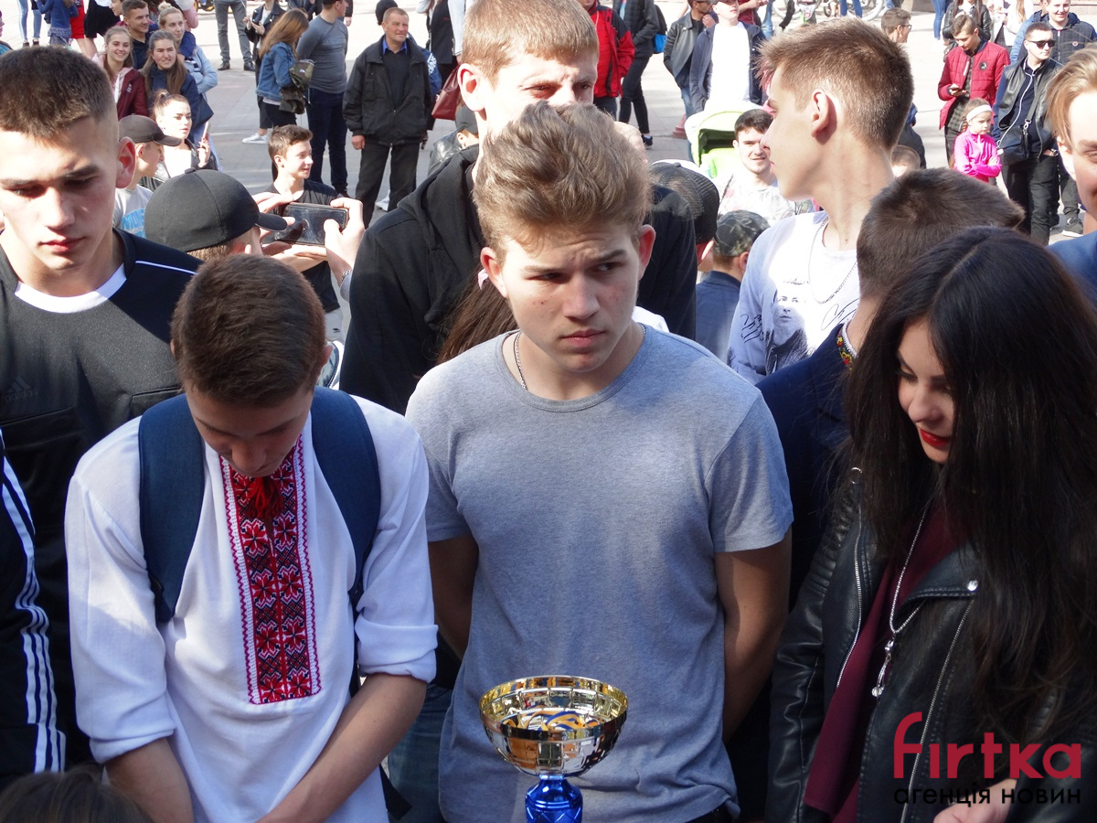 Переможець марафону, який за один підхід виконав 500 віджимань, Святослав Данилишин, отримав кубок від організаторів, а Олександр Максимів - медаль за 800 віджимань за кілька підходів