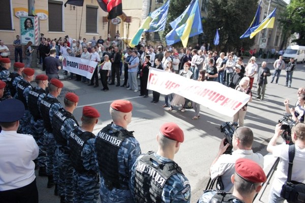 В Івано-Франківську "Беркут" не пустив "Свободу" на панахиду до 9 травня (фоторепортаж)