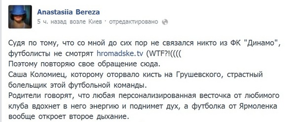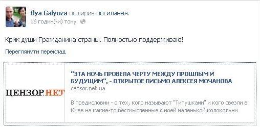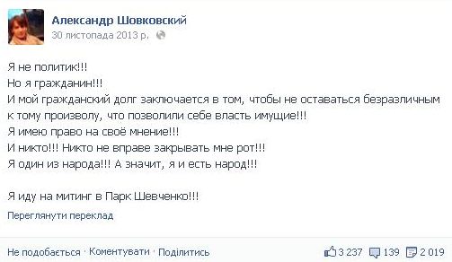 Одразу після кривавого нічного листопадового нальоту на мирних мітингувальників голкіпер "Динамо" залишив свій вже тепер легендарний пост у Фейсбуці.