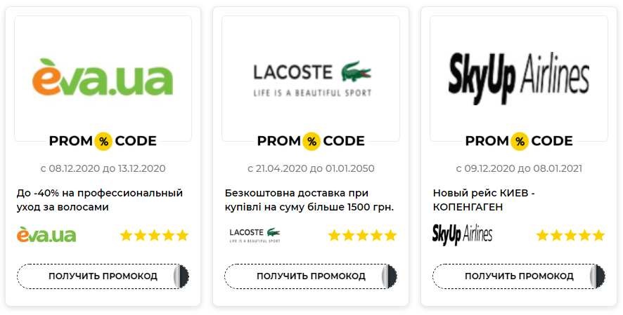 Багато інтернет-магазинів пропонують здійснювати покупки зі знижкою за спеціальним купоном, в якому вказано промокод. Він призначений для певної речі або послуги. Як правило, покупець може використовувати код лише раз.