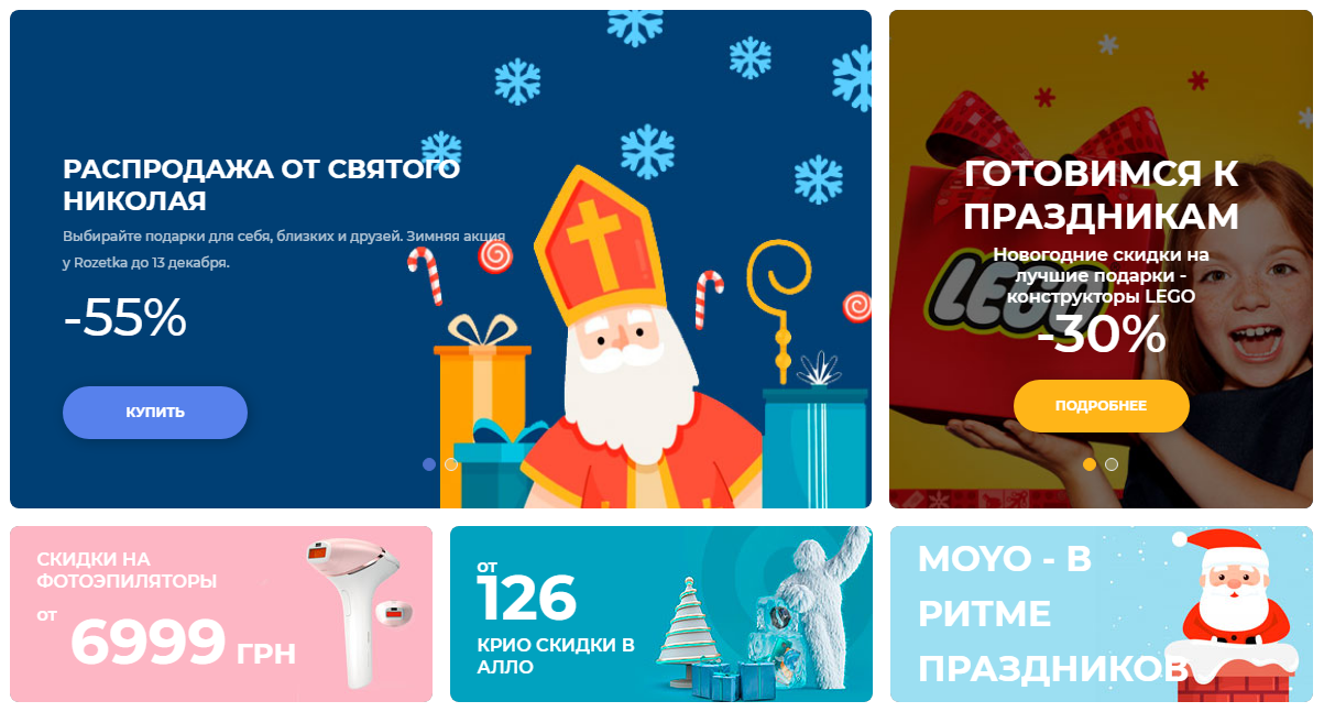 Напередодні зимових свят акцій в магазинах стає ще більше. Це чудова можливість придбати подарунки родичам і друзям. Слідкуйте за оновленнями на сайті агрегатора знижок Uskidka, щоб здійснювати тільки вигідні покупки.