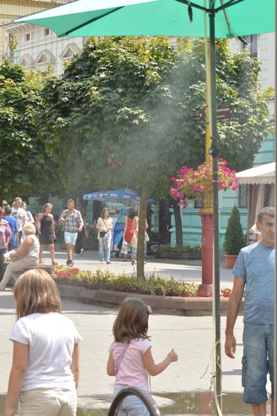 У той час, поки сонце щораз сильніше нагріває повітря, франківчани рятуються хто як може - тамують спрагу морозивом, водою і пересиджуть обідню пору на лавочках в затінку.