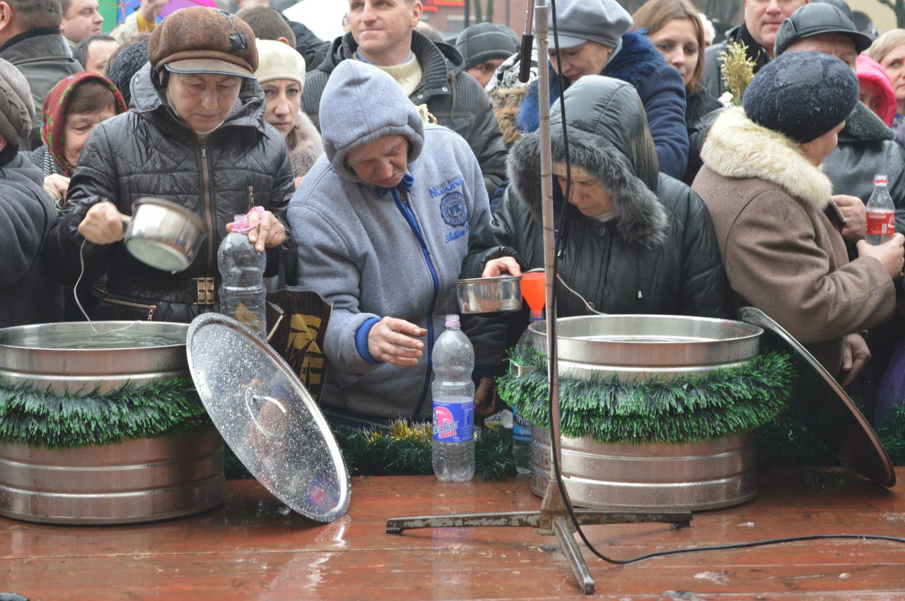 Десятки франківчан з дітьми прийшли до Ратуші, щою набрати освяченої води.