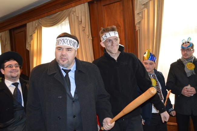 А от двері голови Івано-Франківської облради виявились зачиненими перед вертепом. У приймальній голови цю ситуацію пояснили відсутністю Василя Скрипничука і наче б то його підготовкою до завтрашньої участі у роботі Верховної Ради України.