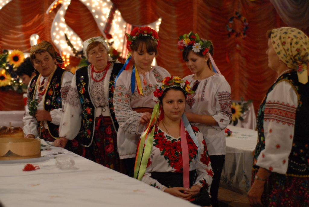 Розкладають і оздоблюють весільні намети. Йдуть до лісу по барвінок, сосенки і весільне деревце - на четвергових вечорницях його прикрашають дружки із дружбами. П’ятницю віддають ладканню і дійству "Віночки", після чого наречена з дружками, - як велить звичай, у національному вбранні, - обходять родину молодого. В день шлюбу вимінюють молоду на кота, тому її батьки готують зо дві, а то й зо три "наречених".
