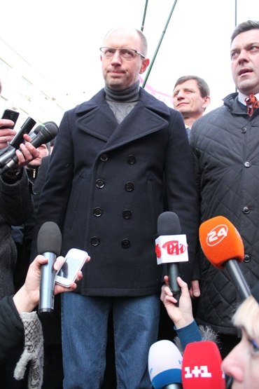 На чолі колони йшли опозиційні лідери - Арсеній Яценюк, Олег Тягнибок та Віталій Кличко.