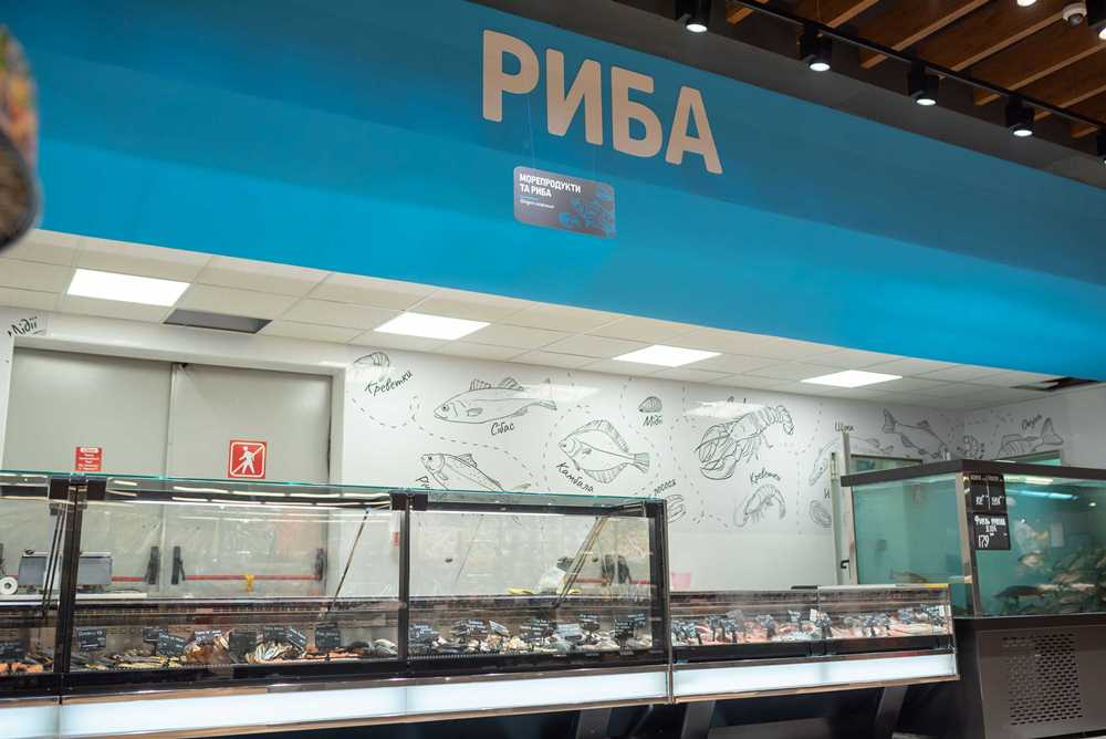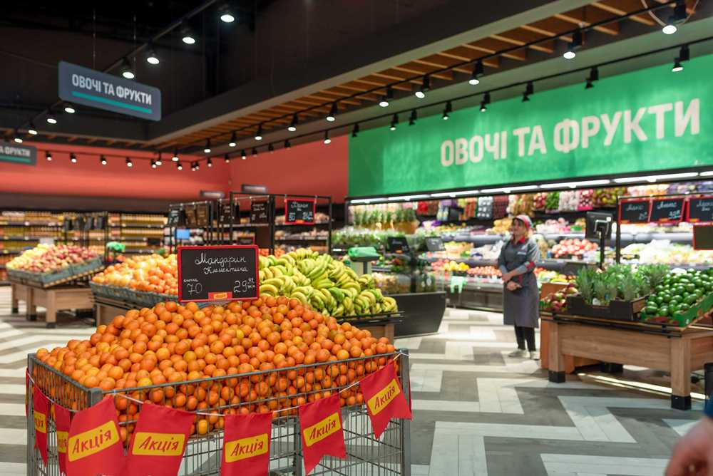 На понад 2500 кв.м. розташувались величезні м’ясний і рибний відділи, кулінарія з грилем, випічка власного виробництва, зона свіжих овочів та фруктів, зокрема й дуже екзотичних.
