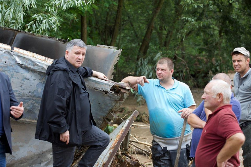 Міністр внутрішніх справ Арсен Аваков разом з Прем’єр-міністром Денисом Шмигалем в рамках моніторингу найбільш потерпілих від повені районів Івано-Франківської області відвідали смт Ланчин, Надвірнянського району.
