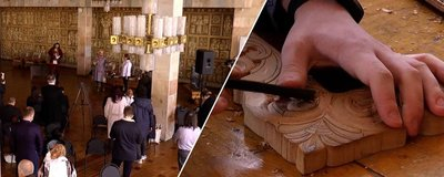 "Це і різьбярство, яке ви бачите зверху. І унікальне панно, яке виконане в техніці Косівської кераміки, яка вже занесена до спадщини ЮНЕСКО. У цьому відображене життя, побут гуцулів, народні ремесла і кухня. Тут дуже багато всього цікавого", – розповів директор театру Ростислав Держипільський.