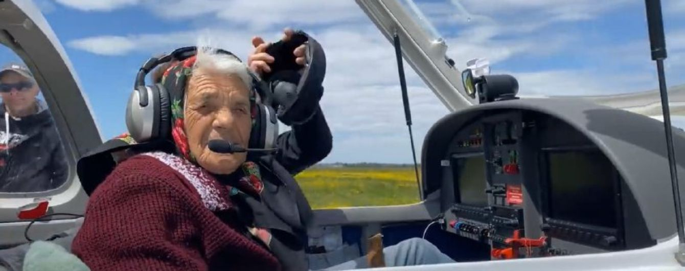 Закарпатська 90-річна бабуся, яка дрифтувала на кабріолеті, показала, як керує літаком.