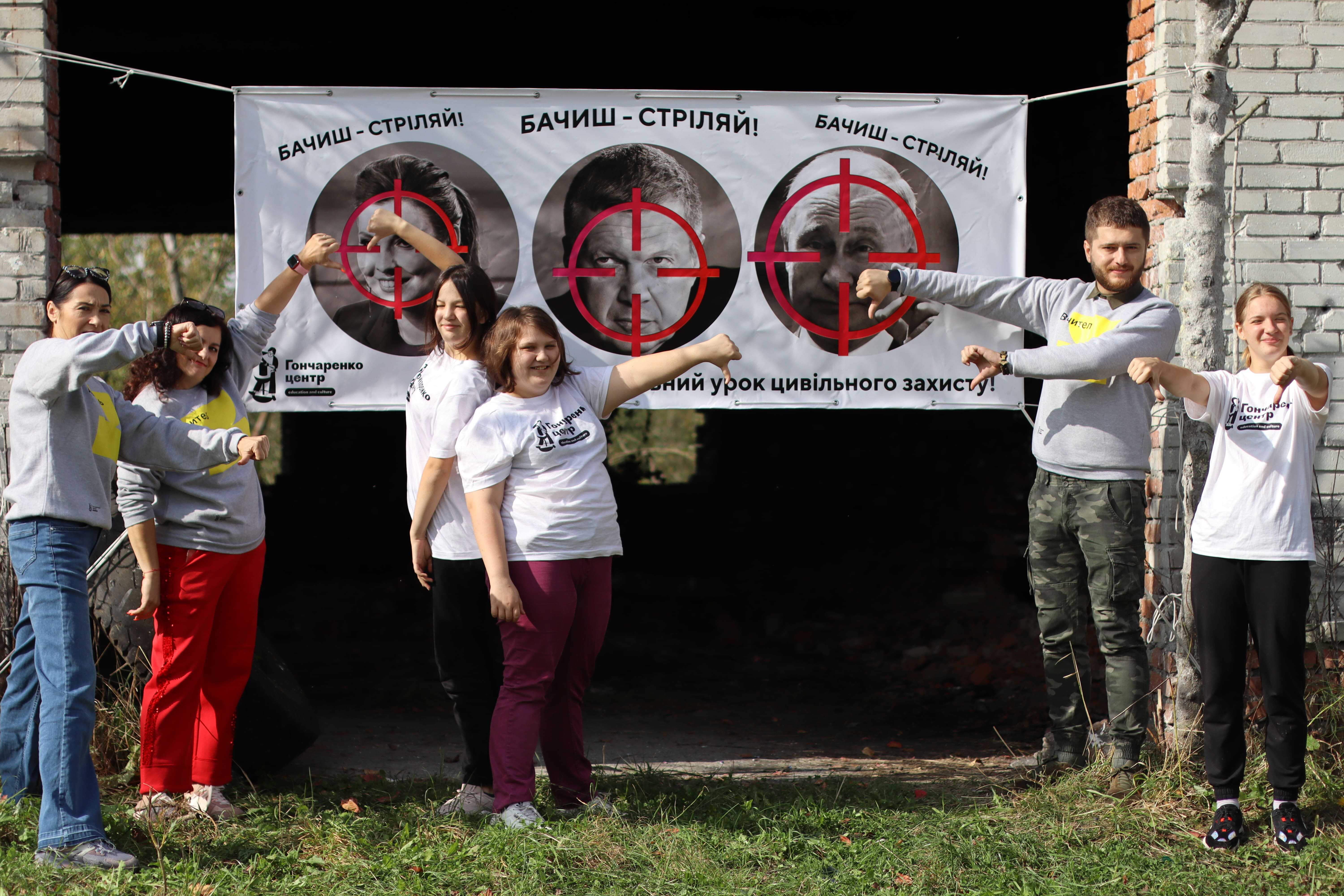 В Івано-Франківську 1 жовтня вихованці місцевого Гончаренко центру влаштували показовий розстріл російських пропагандистів та Путіна. Захід під гаслом «Бачиш — стріляй!» назвали «правильним уроком цивільного захисту».