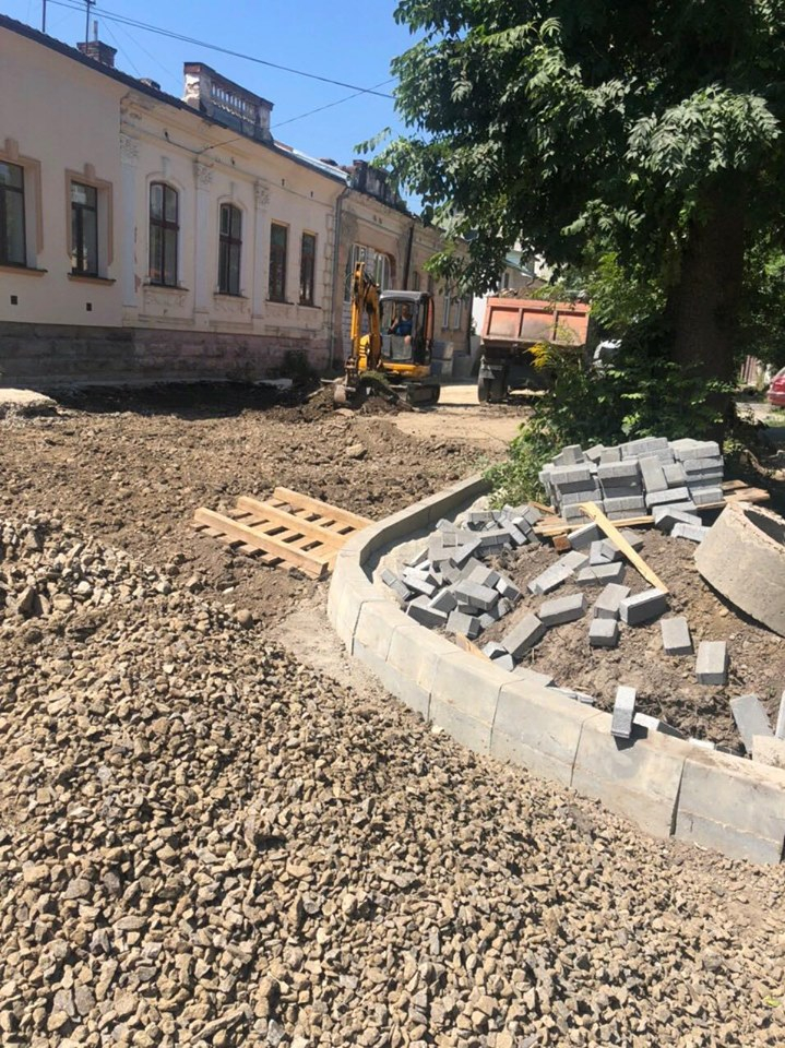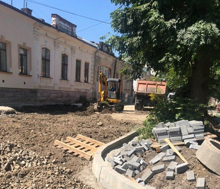 На вулиці уже проведено реконструкцію каналізаційної мережі, а працівники приступили до укладання плитки.