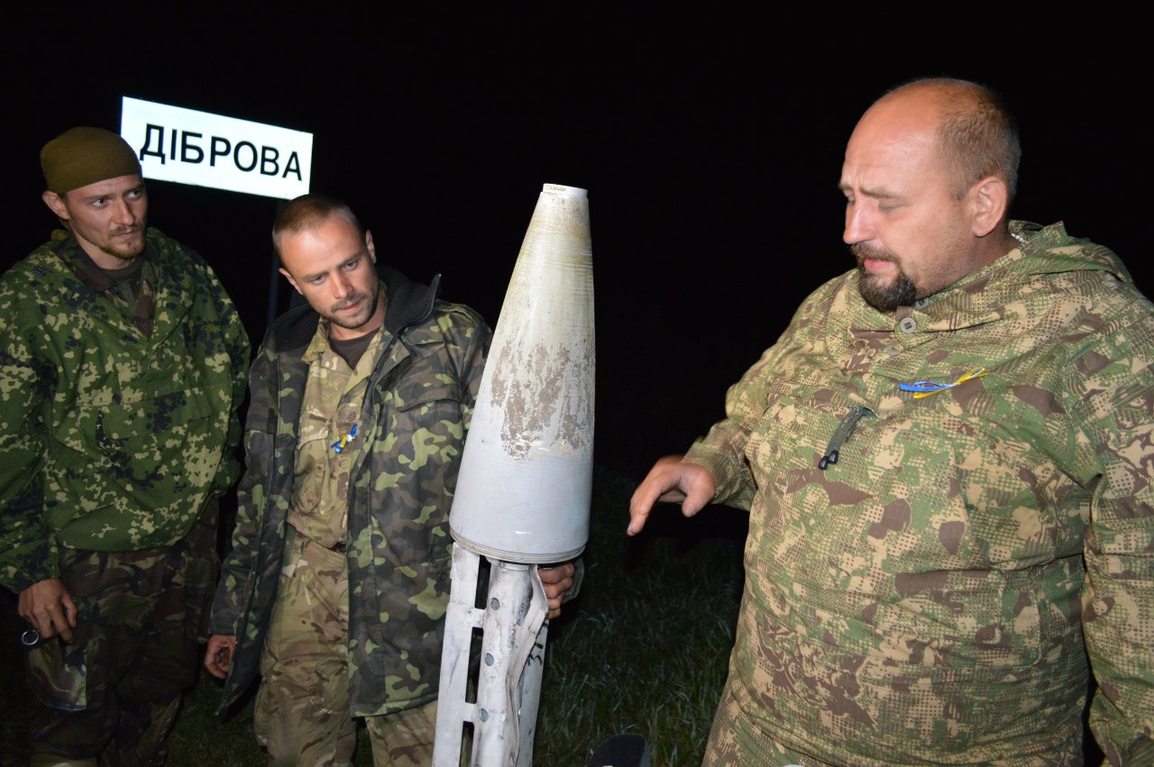 Також військові показали журналістам залишки від "трофейного" снаряду системи "Град", на якій було написано "Привет Майдану".