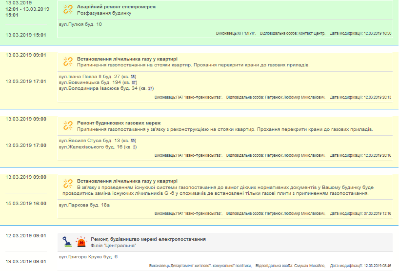 Без благ цивілізації сьогодні, 13 березня, перебуватимуть мешканці за такими адресами: