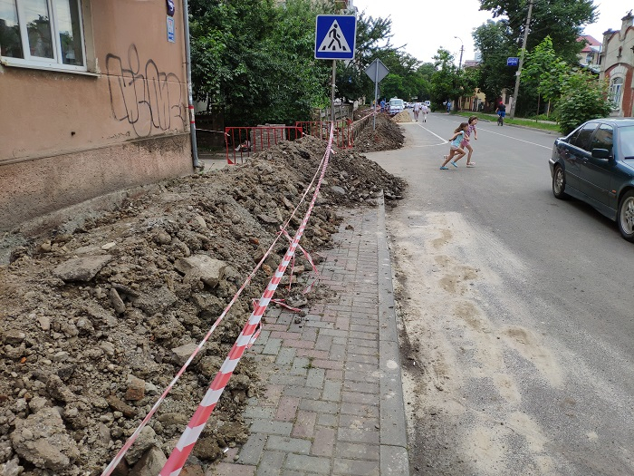 «Як виявилося після ремонту дороги, дощова каналізація на Ленкавського  мала чисельні пориви. І вже наступного року тут справді прорвало трубу, а комунальники знищили монолітне покриття і пошкодили частину дороги. Що ми бачимо зараз? Знищено тротуар, бо проводять комунікації до новобудови. Чому не планувати такі речі завчасно?», - сказав депутат Івано-Франківської міської ради, представник команди «За майбутнє» Володимир Олійник.