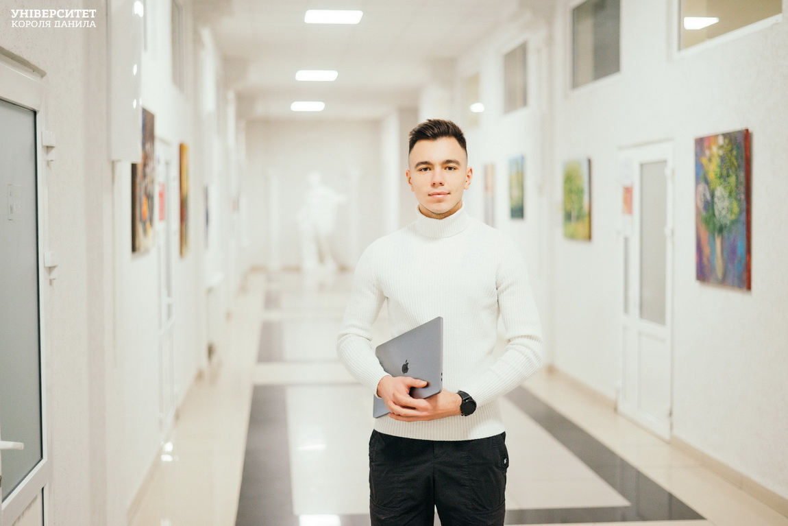 Таким шансом ще у 2019 році скористався сьогодні вже магістр-дизайнер, графічний дизайнер відділу маркетингу та зв’язків з громадськістю УКД Назарій Дрозд. Хлопець розповідає, що прагнув обрати найкращий заклад вищої освіти для своєї професійної реалізації, тому вступив до УКД.