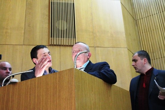 Депутат облради Володимир Олійник закликав заблокувати скриньку для потаємного голосування щодо звільнення Ольги Бабій. Його підтримав і депутат Петро Шкутяк. Головуючий Олександр Левицький заявив, що жодних підстав на це немає...Розпочалася штовханина.