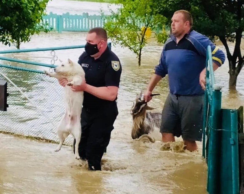 Крім того, поліцейські евакуюють місцевих жителів, допомагають їм та витягують з води свійських тварин.