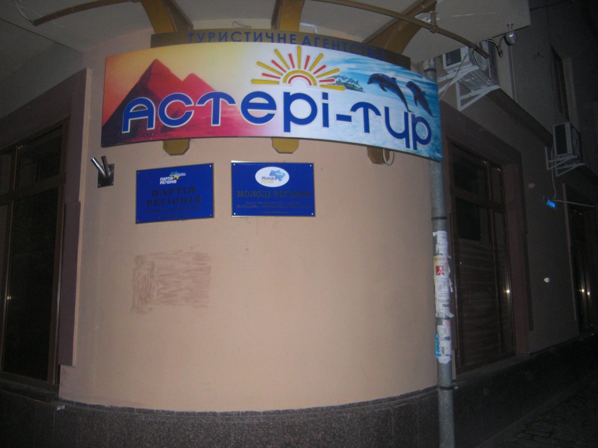 Біля офісу міських «регіоналів» припаркований автомобіль Subaru. При спробі журналіста сфотографувати побиті вікна, з машини вийшли двоє чоловіків. Судячи з форми одягу, один з них ППС-ник, інший – працівник підрозділу міліції спеціального призначення «Беркут». Сказали, що фотографувати заборонено і попросили показати посвідчення особи. На посвідчення журналіста «ГК» правоохоронці відреагували запитанням: «І до вас вже дійшло?». Міліціонери відмовилися щось коментувати, як зрештою і розмовляти з журналістами.