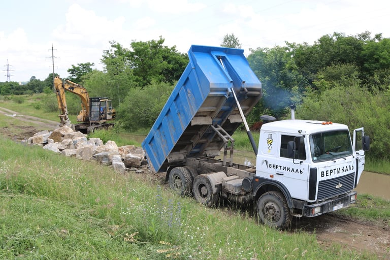 Загалом до кінця тижня планують привезти близько 900 тонн каменю, який підкріпить дамбу і захистить від нових пошкоджень.