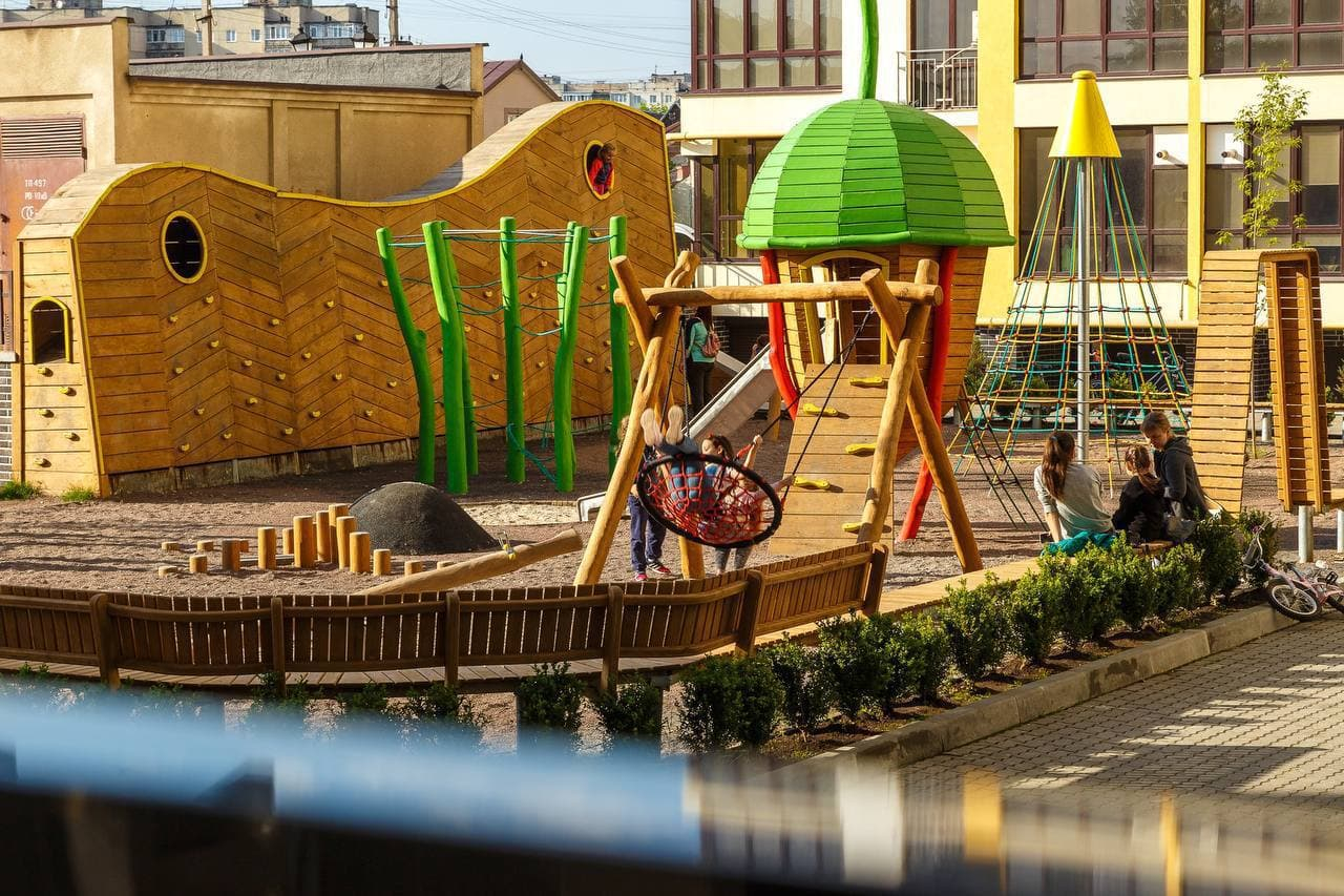 Особливість дитячого майданчика у ЖК Lystopad у тому, що він мультифункціональний та розрахований на дітей різної вікової категорії. Тут передбачено: скеледром, тунель-лабіринт і навіть вуличний батут, який так полюбляють діти. За словами Олега Лєпєніна, незабаром завершиться влаштування автентичного майданчика у ЖК Містечко Козацьке. І мешканці першого заселеного кварталу імені Петра Сагайдачного зможуть комфортно проводити час біля дому разом із дітлахами. Усі комплектуючі дитячого майданчика у Містечку Козацькому вироблені з екологічних матеріалів, адже діткам має бути не лише весело у дворі, але й безпечно та здорово.