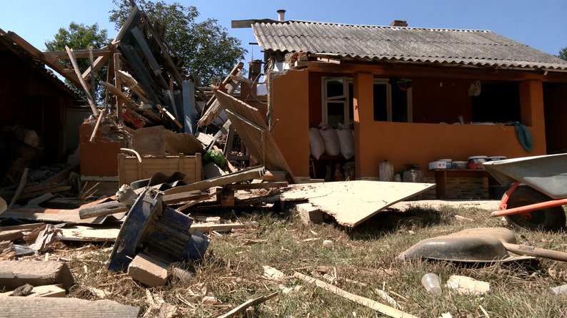 "Шифер "пішов" майже повністю. Комп’ютер стояв, телевізор — то все. Вибило стіну всю. Стіна — 40 см", — каже Василь Марусик.
