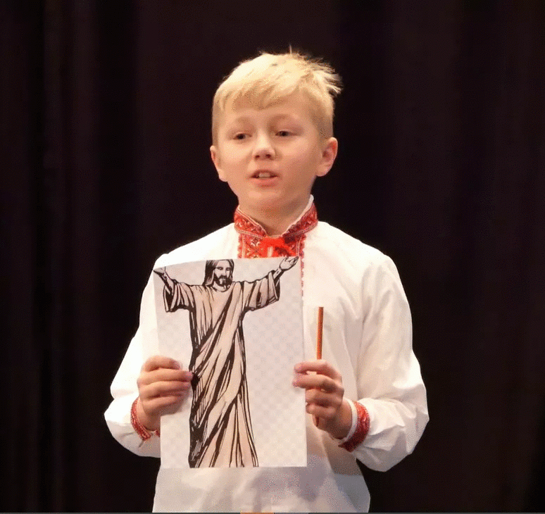 Ролі виконують: - старий мудрець-чернець Володимир Мазур (відомий нам уже по ролі Ісуса Христа у «Хресній дорозі»); - Бабуся - Марія Сем‘янів; - внучка - Христина Здерко; - хлопчика, що малює Ісуса - Андрій Сливка; - багач - Іван Хрін - бідна жінка з дитиною на руках - Тетяна Науменко; - жінка-каліка - Ірина Кудибин; - дівчинка, що виносить Біблію - Марина Портей; - сліпа дівчинка - Настя Глушкевич; - дівчатка-шкодниці - Дем‘янів Вероніка, Селепій Наталя, Кутинець Даринка; - юнак - Владислав Яськів.