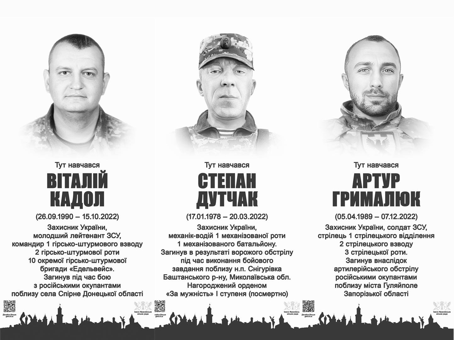 "Шануємо тих, хто віддав найдорожче за Україну. У понеділок, 27 лютого, о 13 годині відкриємо анотаційну дошку трьом захисникам: Віталію Кадолу, Степану Дутчаку, Артуру Грималюку", - йдеться у дописі.