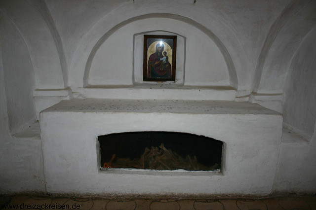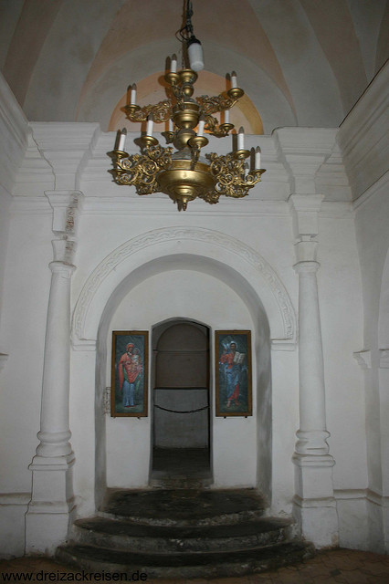 Печери зустріли мене гулкою тишею, яку розривало дзижчання динамо ліхтаря, шум моїх кроків і дихання, шелестіння одягу. Обов’язковим пунктом моєї подорожі було місце, найбільш відвідуване привидами — церква Ніколи Святенника. З церкви Антонія я перейшов до церкви Феодосія, піднявшись на наступний ярус, потрапив до каплиці з кістками, з неї довгою галереєю повз келію Антонія, відому також як «мовчальна», дійшов до мети. Повертатися зворотно можна було або через кімітірію, що примикає до церкви Ніколи Святенника, та вузький коридор, пройшовши ними до каплиці з кістками, або попереднім шляхом повз келію Антонія. Я обрав останній маршрут.