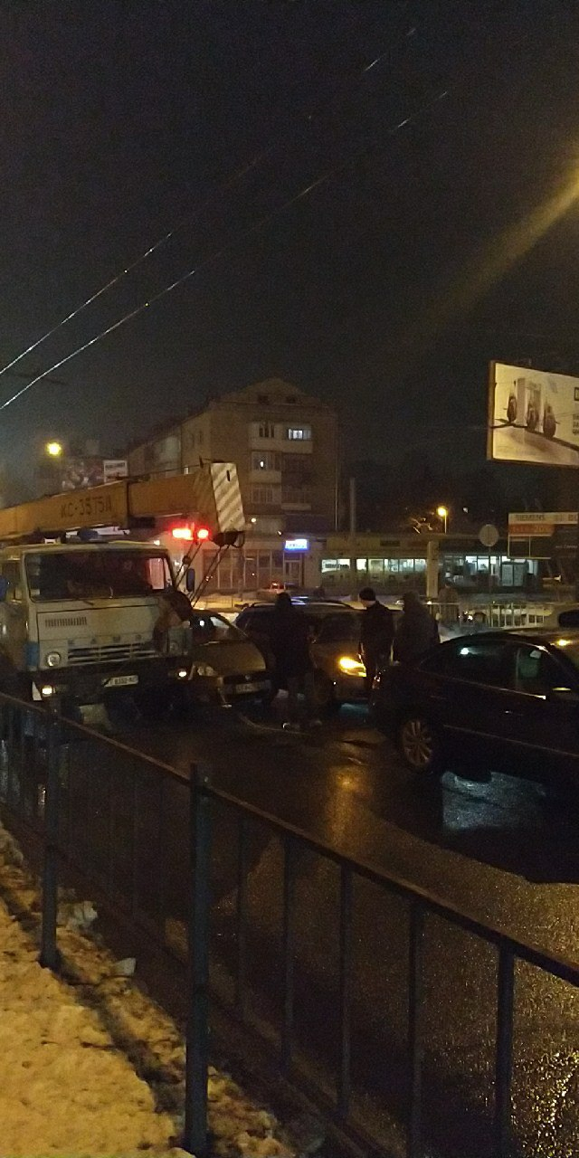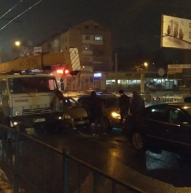 Про зіткнення автокрану та двох автомобілів повідомляють в Телеграм- чаті 112.