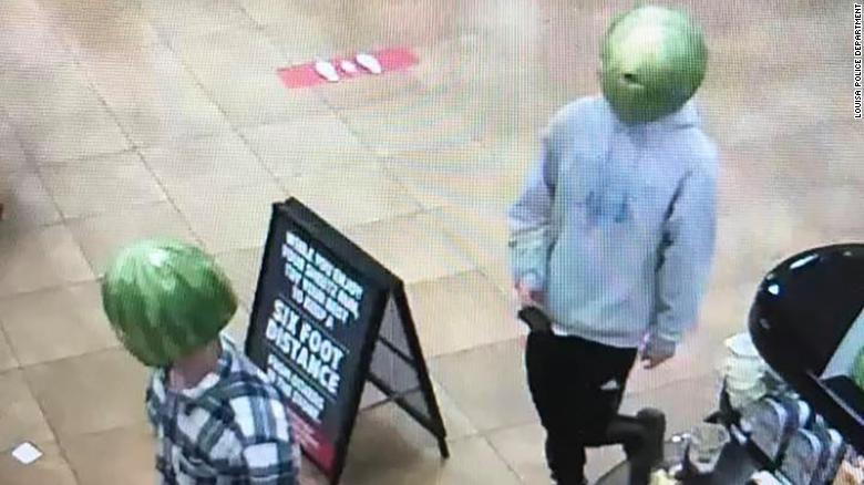 Пара кавунових голів - так, люди з кавунами на голові - викликала неабияку стурбованість після того, як вони використали кавуни як маски для обличчя, щоб пограбувати крамницю в маленькому містечку штату Вірджинія.