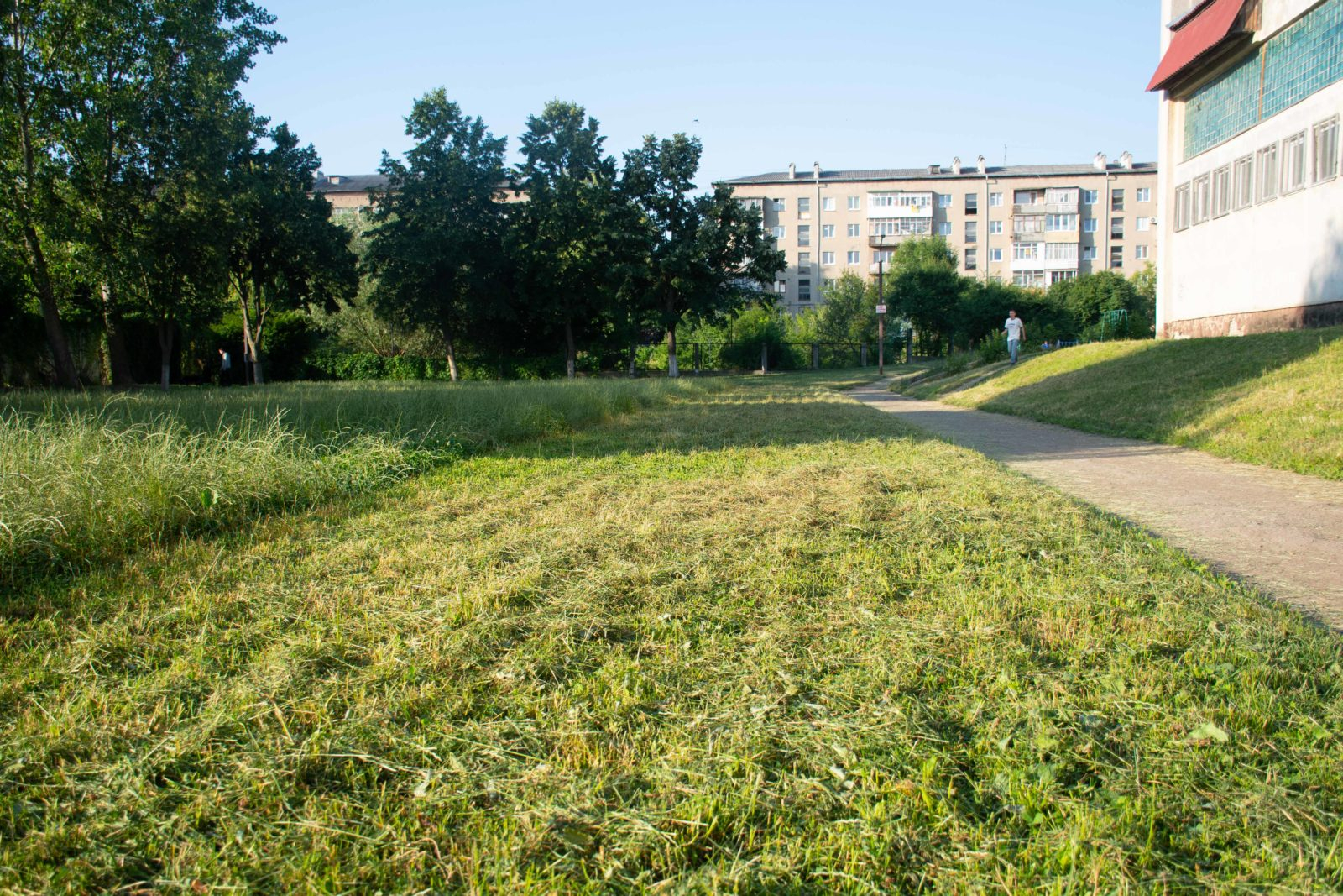 Стартували з проходу площі Привокзальної до вул. Донцова. Там на замовлення департаменту ЖКПБ тривають ремонти. Також заїхали й у двір на вул. Сахарова, 30. Вже зовсім скоро подвір’я буде комплексно відремонтоване.