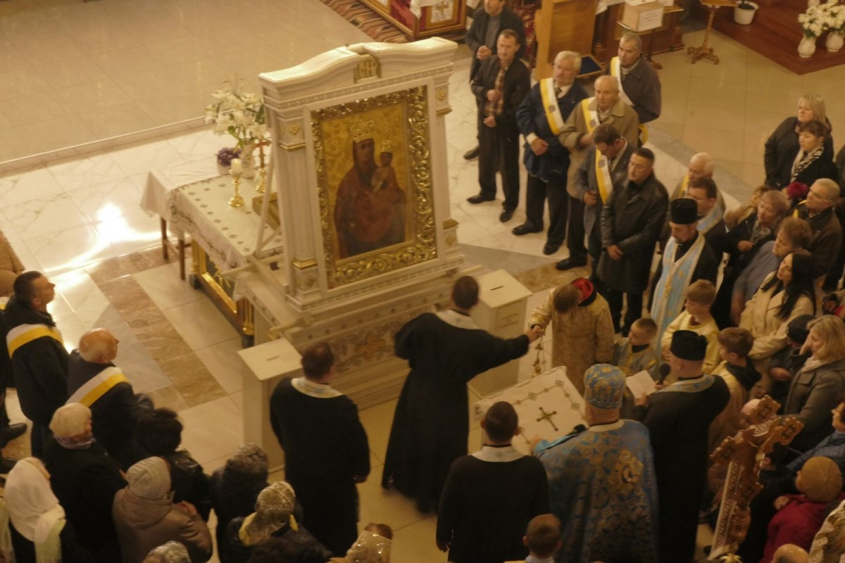 Відразу після внесення до храму розпочалися чування: відправили молебень до Богородиці та відслужили божественну літургію. Далі відбувалась молитва на оздоровлення, помазання освяченим єлеєм.