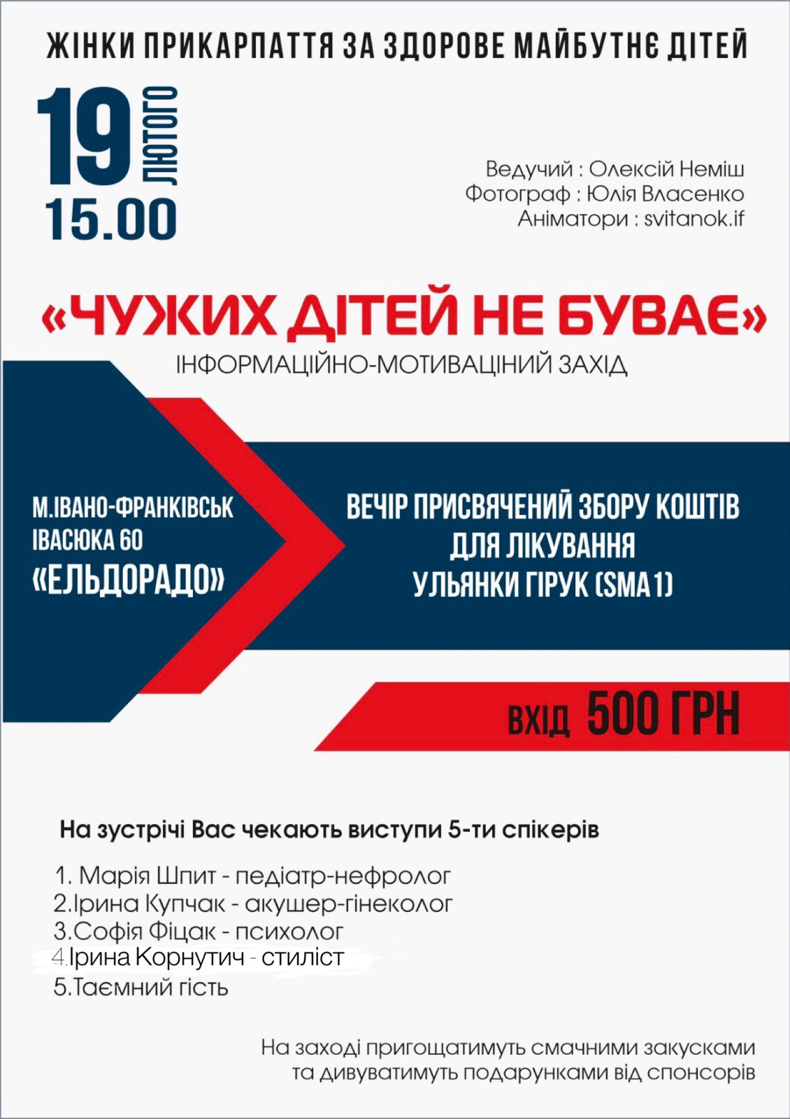 Як повідомила одна з організаторок заходу Інна Новарчук, лікарі поставили дівчинці смертельний діагноз – СМА 1 типу. Врятувати дитину може укол, який коштує 2 300 000 доларів США. Саме тому усі кошти, зібрані з відвідувачів заходу спрямують на порятунок дівчинки.