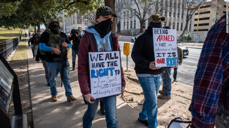 "Ми бачимо, як екстремізм із застосуванням зброї продовжує зростати в країні, ми також бачили, як люди починають демонструвати зброю на маршах і мітингах, а потім з'являються на виборчих дільницях, у будинках кандидатів, службовців, у державних будівлях, як от 6 січня у Капітолії США ", - сказала Шеннон Уоттс, засновниця" Moms Demand Action", яка бореться за заходи безпеки з часу стрілянини в початковій школі "Сенді Гук" у Коннектикуті 2012 року, в результаті якої загинули 20 дітей та шість вихователів.