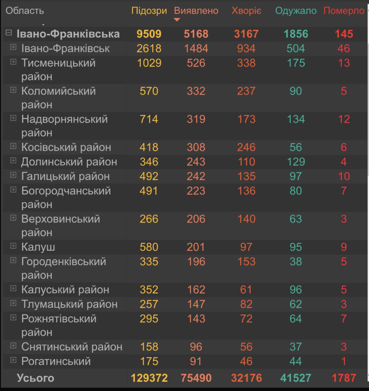 Наразі, в області є 9 509 підозр на коронавірусну хворобу. Загалом хворіють 3 167 прикарпатців.