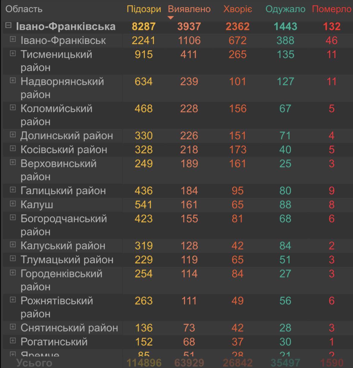 Наразі, в області є 10 019 підозр на коронавірусну хворобу. Загалом хворіють 3 449 прикарпатців.