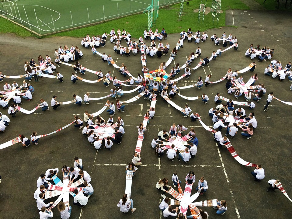 "500 учнів і педагогів та 250 вишитих рушників! В гімназії №2 організували флешмоб до Дня вишиванки. Дивіться, як це гарно!", - йдеться у дописі.