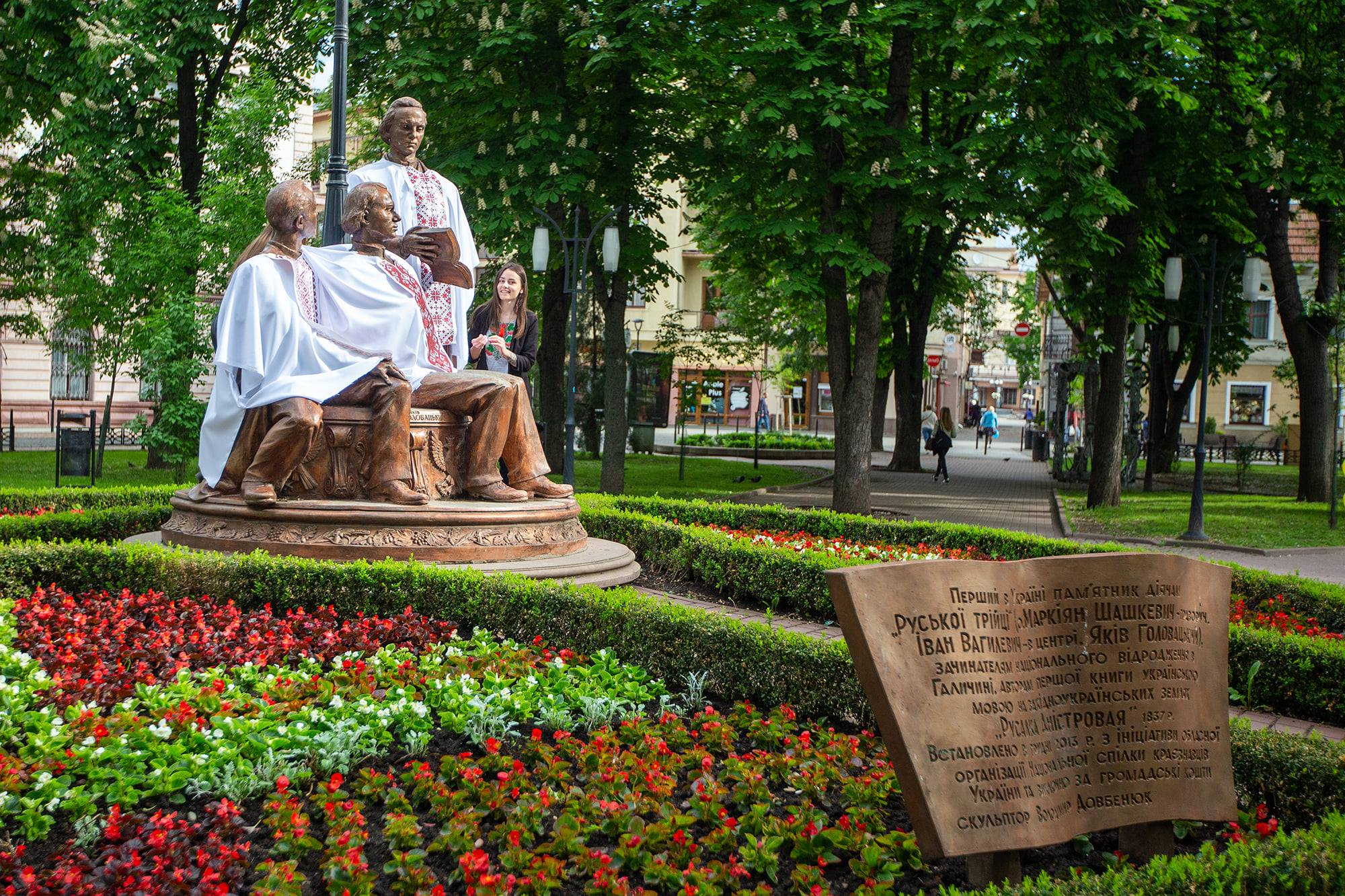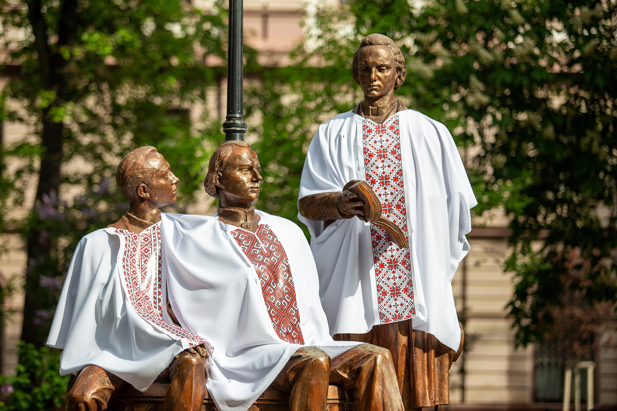 "Із самого ранку разом із Департамент молодіжної політики та спорту вбрали Пам'ятник Руській трійці у білосніжні вишиванки. Тепер Маркіян Шашкевич, Яків Головацький та Іван Вагилевич аж сіяють на весь сквер!", - написав мер.