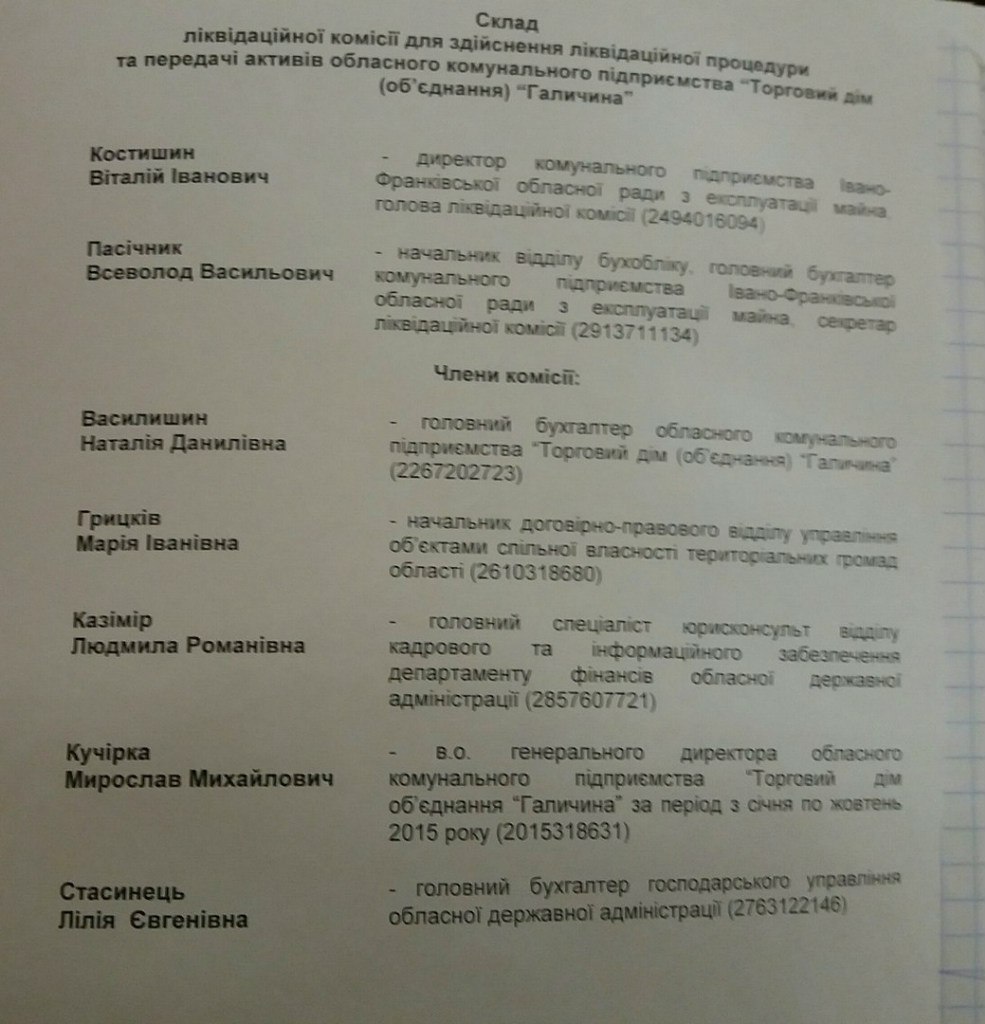 Депутати Івано-Франківської обласної ради затвердили склад ліквідаторів обласного КП "Торговий дім "Галичина"