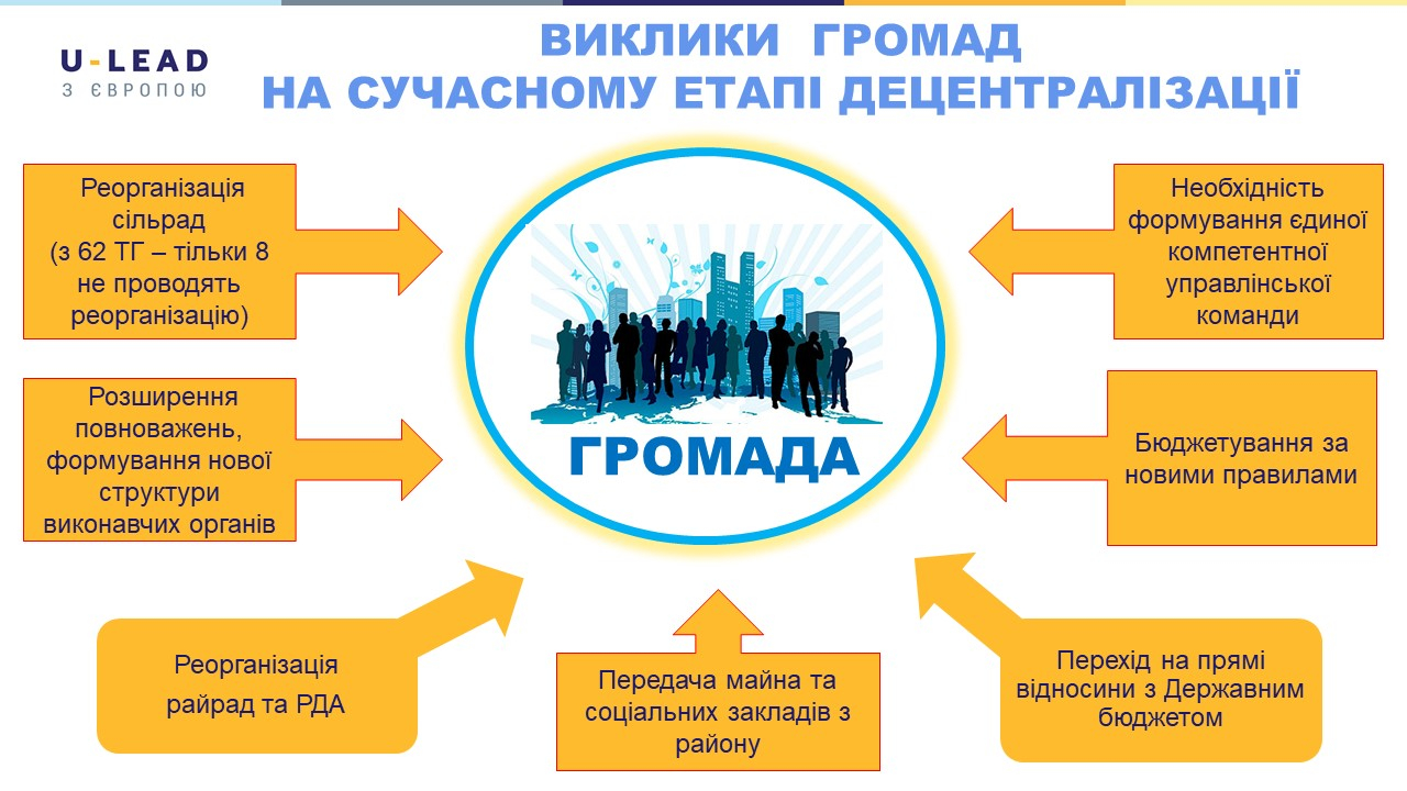 Також складнощі виникли й на етапі реорганізації РДА і райрад, передачі майна та соціальних закладів з району та переході на прямі відносини з Державним бюджетом, розширенням повноважень, формування нової структури виконавчих органів, формування єдиної компетентної управлінської команди та бюджетуванням за новими правилами.