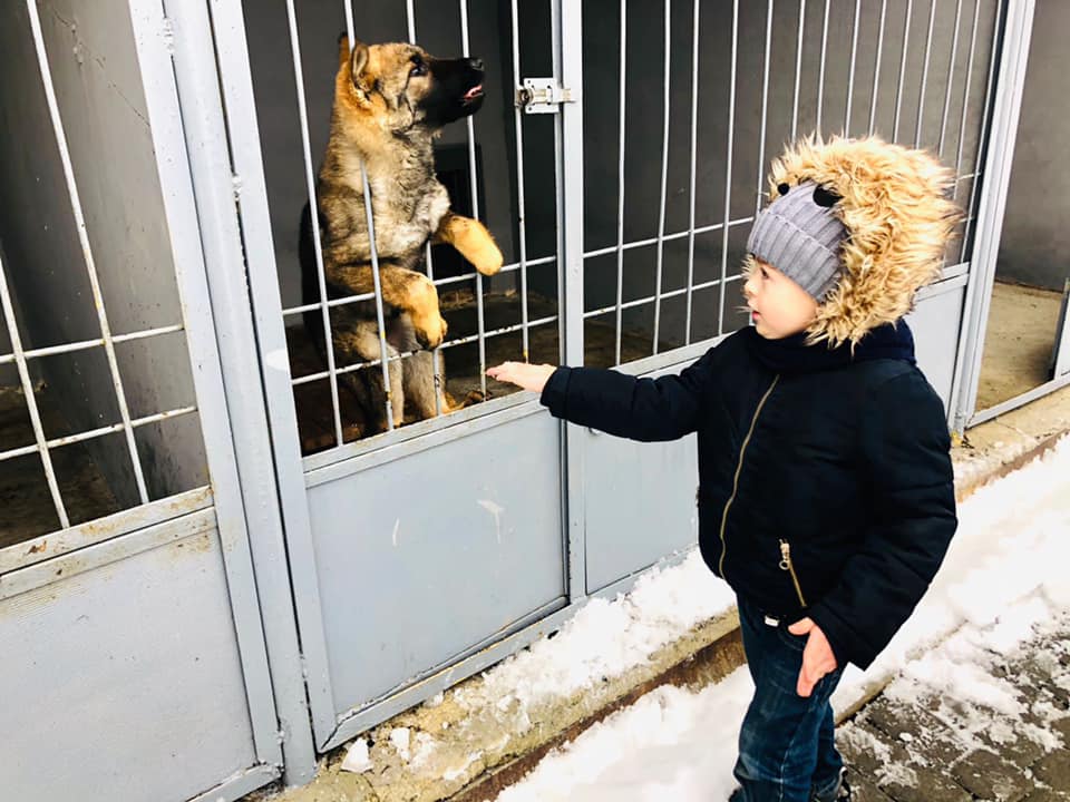 Спочатку Сашко на власні очі побачив службових собак у поліцейському кінологічному центрі та навіть мав змогу «попрацювати» з чотирилапим напарником на спеціальному тренувальному майданчику.