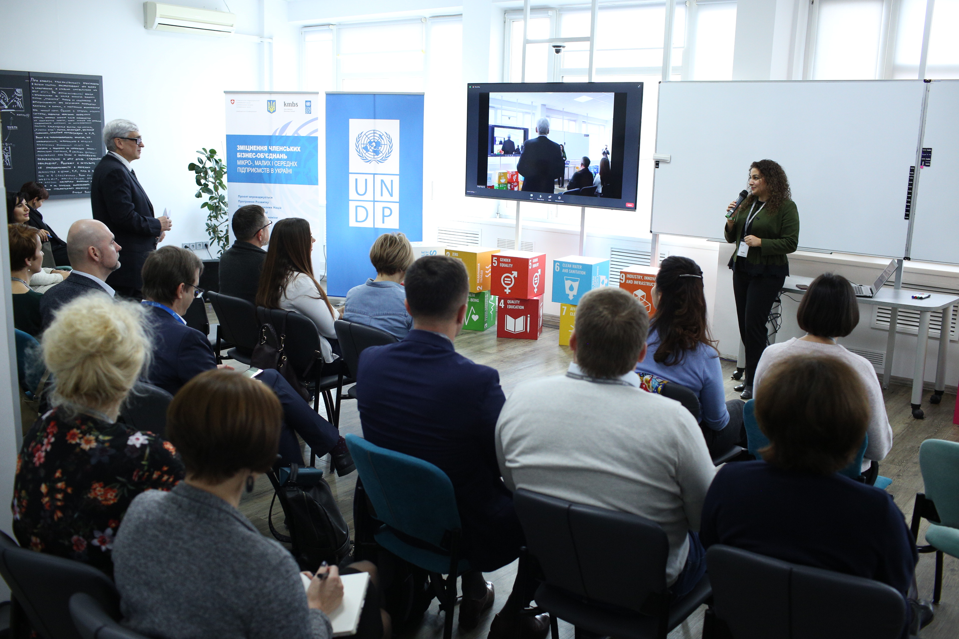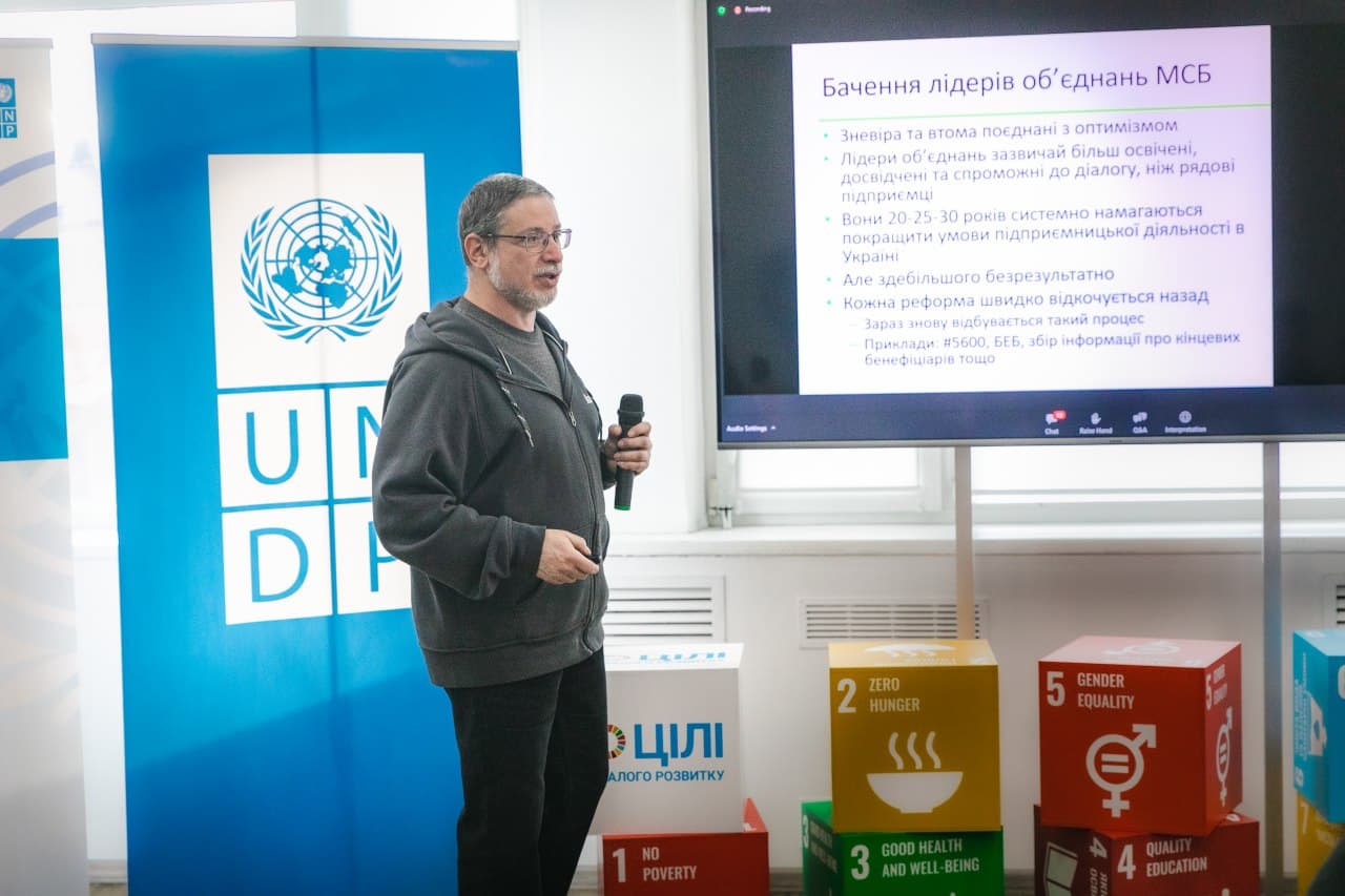 Зокрема, на заході, що об’єднав разом майже 200 онлайн та офлайн-учасників представили лідерську програму для керівників бізнес-об’єднань із компонентом онлайн навчання, а також інші напрацювання проєкту ПРООН «Зміцнення членських бізнес-об’єднань мікро-, малих і середніх підприємств в Україні».
