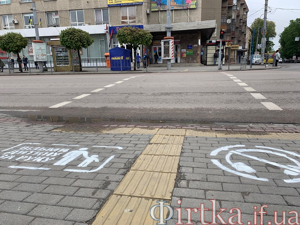 15 травня, на тротуарах перед пішохідними переходами в Івано-Франківську патрульні за допомогою трафаретів нанесли попереджувальні надписи “Візьми дитину за руку”, "Зніми навушники", “Сховай телефон”, “Велосипедист” та інші.