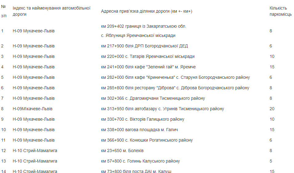 Рятувальники нагадують перелік паркувальних місць в Івано-Франківській області для розміщення вантажних автомобілів на випадок можливого погіршення погодних умов в осінньо-зимовий період.