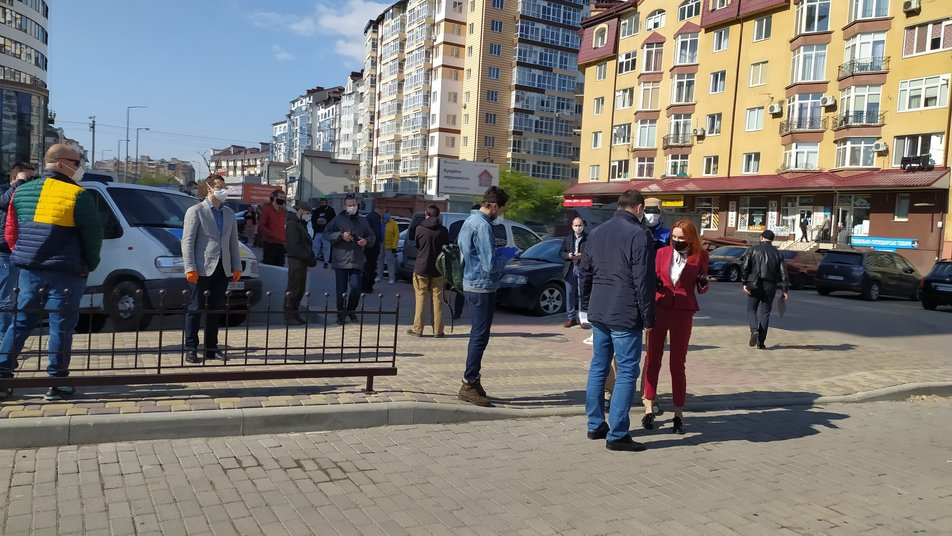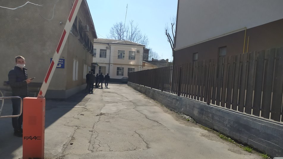 Щоб підтримати очільника міста, до відділення поліції прийшли люди. Були у засобах захисту, але соціальної дистанції дотримувалися не всі.